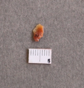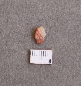 | Description / विवरण | It is carnelian stone fragment. With cut edges and often flaked, with bulb of percussion seen in it. |