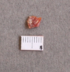 | Description / विवरण | It is carnelian stone fragment. With cut edges and often flaked, with bulb of percussion seen in it. |