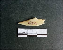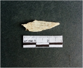 | Description / विवरण | The shell fragment is a small piece, with truncated ends and sharp edges. The piece has natural polish on its inner surface and outer surface has natural rough striations. The piece is pale white in color. The piece is waste material bi - product as a result of shell working at the site. |