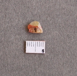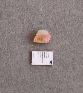 | Description / विवरण | It is chalcedony stone fragment. With cut edges and often flaked, with bulb of percussion seen in it. |