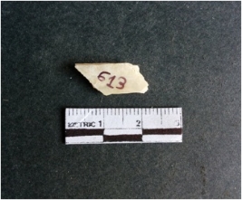 | Description / विवरण | The shell fragment is a small piece, with truncated ends and sharp edges. The piece has natural polish on its inner surface and outer surface has natural rough striations. The piece is pale white in color. The piece is waste material bi - product as a result of shell working at the site. |
