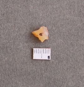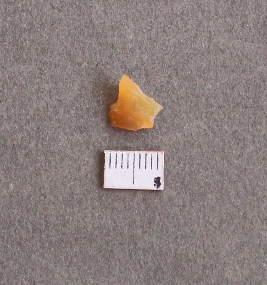 | Description / विवरण | It is chalcedony stone fragment. With cut edges and often flaked, with bulb of percussion seen in it. |
