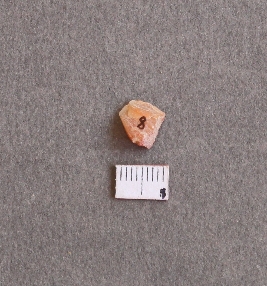 | Description / विवरण | It is chalcedony stone fragment. With cut edges and often flaked, with bulb of percussion seen in it. |