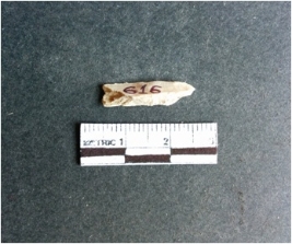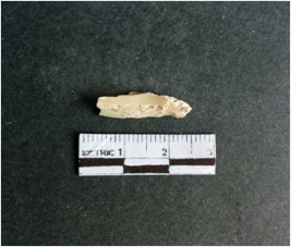 | Description / विवरण | The shell fragment is a small piece, with truncated ends and sharp edges. The piece has natural polish on its inner surface and outer surface has natural rough striations. The piece is pale white in color. The piece is waste material bi - product as a result of shell working at the site. |