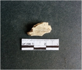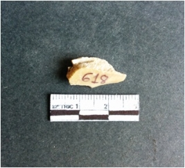 | Description / विवरण | The shell fragment is a small piece, with truncated ends and sharp edges. The piece has natural polish on its inner surface and outer surface has natural rough striations. The piece is pale white in color. The piece is waste material bi - product as a result of shell working at the site. |