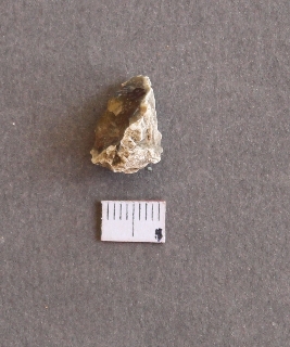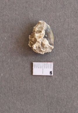 | Description / विवरण | It is chalcedony stone fragment. With cut edges and often flaked, with bulb of percussion seen in it. |