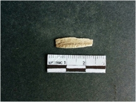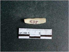 | Description / विवरण | The shell fragment is a small piece, with truncated ends and sharp edges. The piece has natural polish on its inner surface and outer surface has natural rough striations. The piece is pale white in color. The piece is waste material bi - product as a result of shell working at the site. |