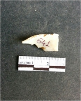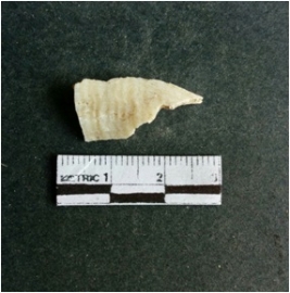 | Description / विवरण | The shell fragment is a small piece, with truncated ends and sharp edges. The piece has natural polish on its inner surface and outer surface has natural rough striations. The piece is pale white in color. The piece is waste material bi - product as a result of shell working at the site. |