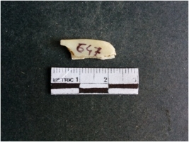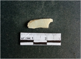 | Description / विवरण | The shell fragment is a small piece, with truncated ends and sharp edges. The piece has natural polish on its inner surface and outer surface has natural rough striations. The piece is pale white in color. The piece is waste material bi - product as a result of shell working at the site. |