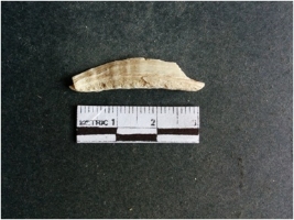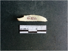 | Description / विवरण | The shell fragment is a small piece, with truncated ends and sharp edges. The piece has natural polish on its inner surface and outer surface has natural rough striations. The piece is pale white in color. The piece is waste material bi - product as a result of shell working at the site. |
