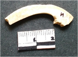 | Description / विवरण | It is a shell circlet. It is a waste material. Irregular in shape. Flat in section. Dull whitish in color. |