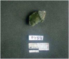 | Description / विवरण | A chert piece with flaked ridges and smooth surface, greenish grey in color. |