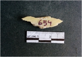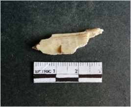 | Description / विवरण | The shell fragment is a small piece, with truncated ends and sharp edges. The piece has natural polish on its inner surface and outer surface has natural rough striations. The piece is pale white in color. The piece is waste material bi - product as a result of shell working at the site. |