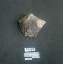 | Description / विवरण | A plain bulky chet stone piece with bulb of percussion seen on one side and flaked ridges on the other. |