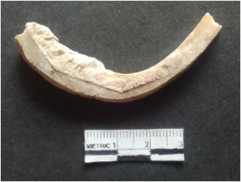 | Description / विवरण | It is a shell circlet. Unfinished and polished. Irregular in shape. Dull whitish in color. |