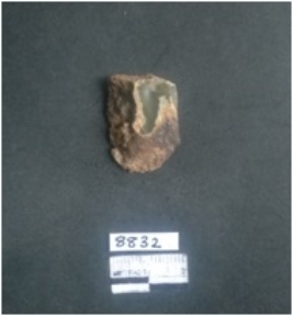 | Description / विवरण | This is a chert fragment with cortex covered one side mostly. Flakes had been removed from both the sides. Bulb of percussion seen on the vendral side. |