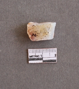 | Description / विवरण | It is quartz stone fragment with dotted spots possibly ferrous impurities. |