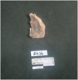 | Description / विवरण | This piece is a flat primary flake deposite with cortex. Retouched with sharp edges. |