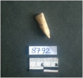 | Description / विवरण | Opaque white in color, this milky quartz piece is elongated in shape with tappered point at one end. |