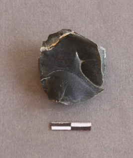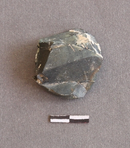 | Description / विवरण | It is jasper of black with white bands, cut edges with bulb of percussion seen. |