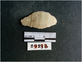 | Description / विवरण | The shell fragment is a small piece, with truncated ends and sharp edges. The piece has natural polish on its inner surface and outer surface has natural rough striations. The piece is pale white in color. The piece is waste material bi - product as a result of shell working at the site. |