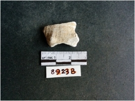 | Description / विवरण | The shell fragment is a small piece, with truncated ends and sharp edges. The piece has natural polish on its inner surface and outer surface has natural rough striations. The piece is pale white in color. The piece is waste material bi - product as a result of shell working at the site. |