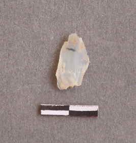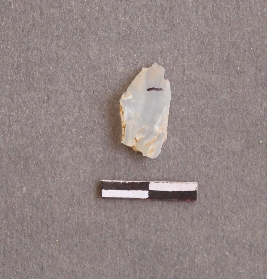 | Description / विवरण | Quartz flake, transparent with ribs on one side and bulb of percussion on the other. |