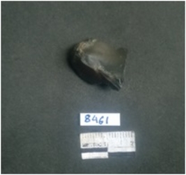 | Description / विवरण | This is a jasper fragment with very sharp side edges, bulb of percussion seen with ripples. Retouched and smooth surface. A small portion of cortex seen. |