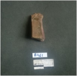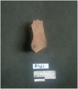 | Description / विवरण | This piece is rectangular and bulky. Marks of removed flakes with sharp edges. One end flatter than the other. |