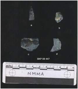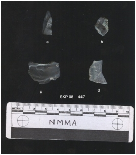 | Description / विवरण | It is a chalcedony flake, with a bulb of percussion on the ventral side. |