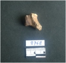 | Description / विवरण | This is a fragment of chert stone with a small portion covered with calcified cortex. Irragular edges with sharp flaked sides. Yellow ocherish in shade. |