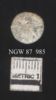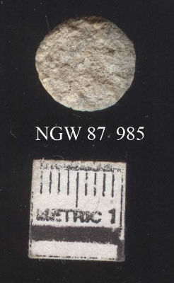 | Description / विवरण | A circular piece of shell highly encrusted. Might have been used as an inlay piece or is a ring manufacturing waste. The soil incrustation are clearly seen on the surface. |
