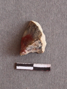 | Description / विवरण | It is a jasper fragment, rounded in shape, but flakes are visible. |