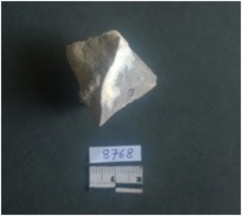 | Description / विवरण | Chert stone fragment with cortex and sharp edges. This is a bulky piece with ridges. |