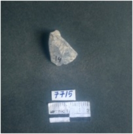 | Description / विवरण | This is a chert stone fragment, this is a flate, flake with a prominent bulb of percussion with ripples, thin and sharp margins. |