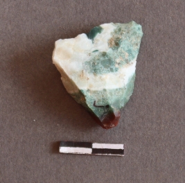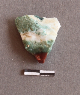 | Description / विवरण | The jasper flake has calcite, ferrous and cuprous impurities. The piece has numerous flake scars on the surface. |