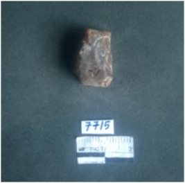 | Description / विवरण | This is a jasper stone, cortex on one surface, flaked marks on the other side seen. |