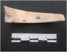| Description / विवरण | It is a shell circlet, unpolished and unfinished. Pale white in color, cut marks on the surface. |