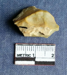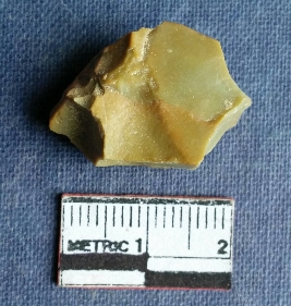 | Description / विवरण | The chert piece has numerous flake scars. The flake has cortex on one end. The piece is rolled at one end and has sharp edges. |