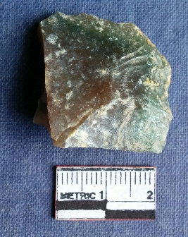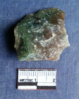 | Description / विवरण | The jasper piece has sharp angular edges and a shaper edges as a result of flaking. |