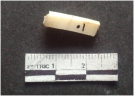 | Description / विवरण | It is a shell circlet, unfinished and unpolished. Saw cut marks on the surface and white in color. |