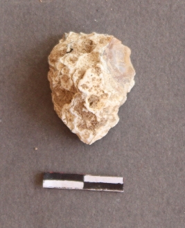 | Description / विवरण | It is jasper fragment, with cortex on the surface flake ridges on one end. Patinated with calcium impurities. |