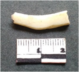 | Description / विवरण | It is a shell circlet, unfinished and unpolished. Saw cut marks on the surface and whitish in color. |