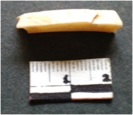| Description / विवरण | It is a shell circlet, unfinished and unpolished. Saw cut marks on the surface and whitish in color. |