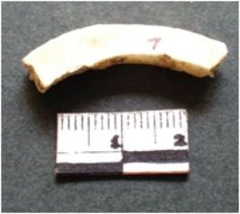 | Description / विवरण | It is a shell circlet, unfinished and unpolished. Saw cut marks on the surface and whitish in color. |