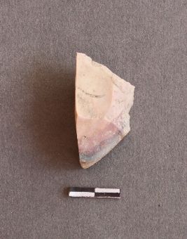 | Description / विवरण | The chart fragment has sharp edges and angular indention due to flaking. It is a chunky piece with angular edges. |