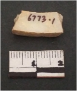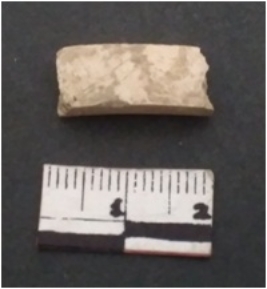 | Description / विवरण | It is a shell bangle fragment, broken. Unfinished and unpolished, dull in color. |