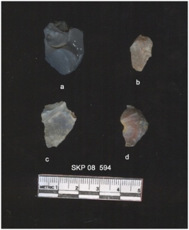 | Description / विवरण | Lithic waste of chalcedony impure cortex, with surfacial dart. Striking platform flaked ridges with ripples. |