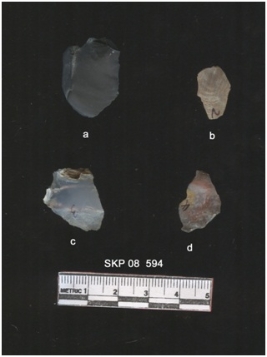 | Description / विवरण | Japer, bulb of percussion on the ventral side, banded ridges of red and yellow. |
