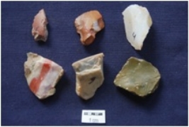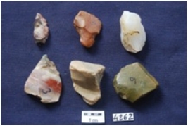 | Description / विवरण | Six pieces of stone tool manufacturing waste, five of chert and one of agate. |